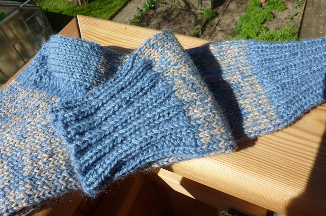 mit kurzem Bund, den ich rechtsverschränkt gestrickt habe, damit die Elastizität hoch bleibt.