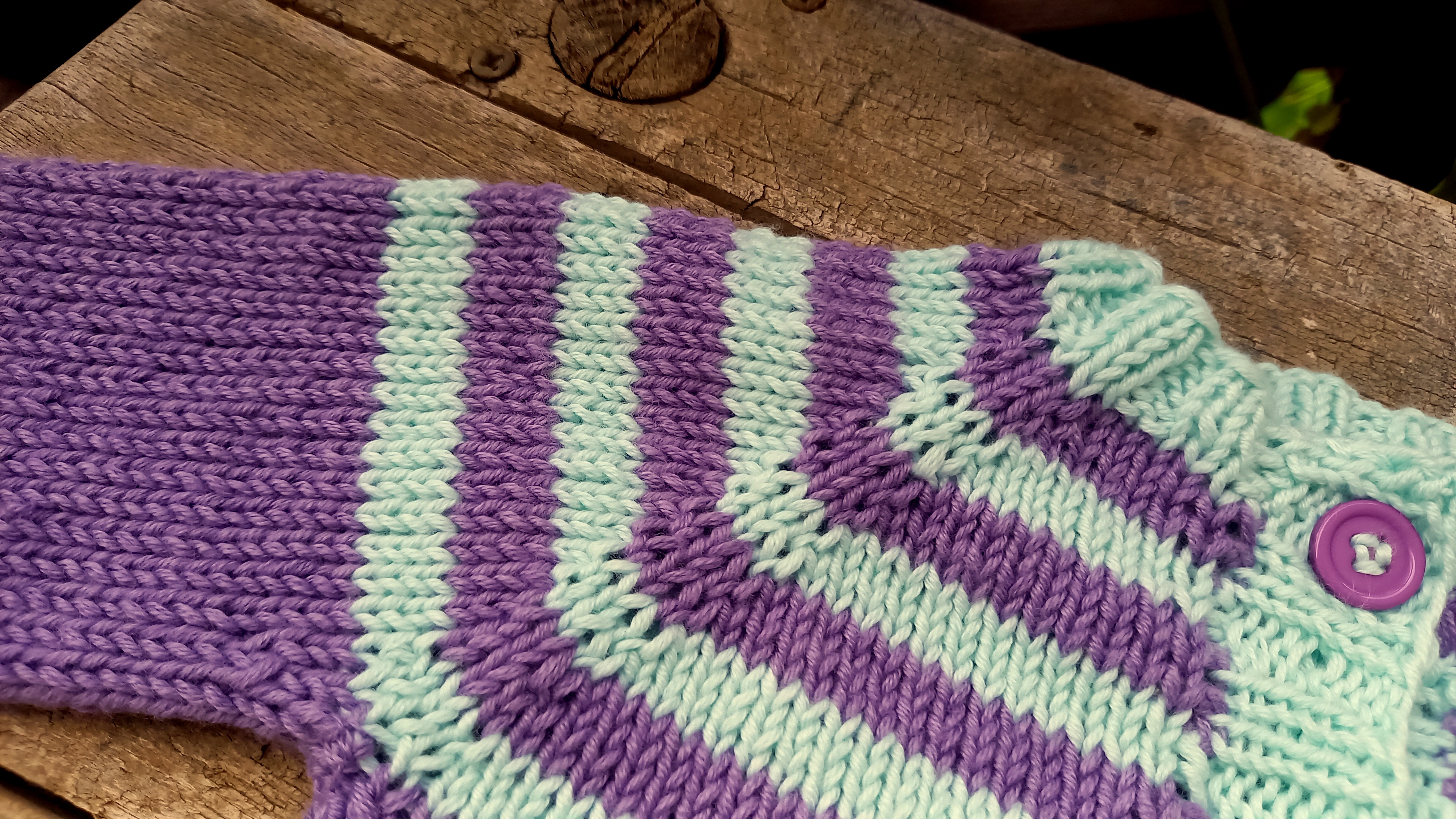 ... habe ich schon lange nicht mehr verstrickt. Aber für die kleine H. wollte ich ein weiches, feines Sommerjäckchen stricken und hatte tatsächlich nichts entsprechendes in den Wollschachteln. Aber auf dem Weg vom Bus zur Schule wurde ich im Wollgeschäft fündig. Die Farbwahl war nicht leicht - lila und mint.